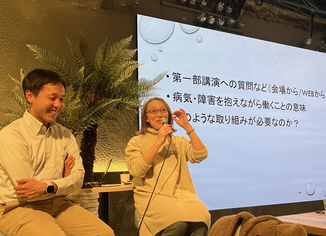 第1部の講演、第2部のディスカッションを踏まえ、病気や障害を持ちながら働くということについて考えたいと思います。病気や障害を持つ方々がよりよく生活できる未来につながる機会になれば幸いです。