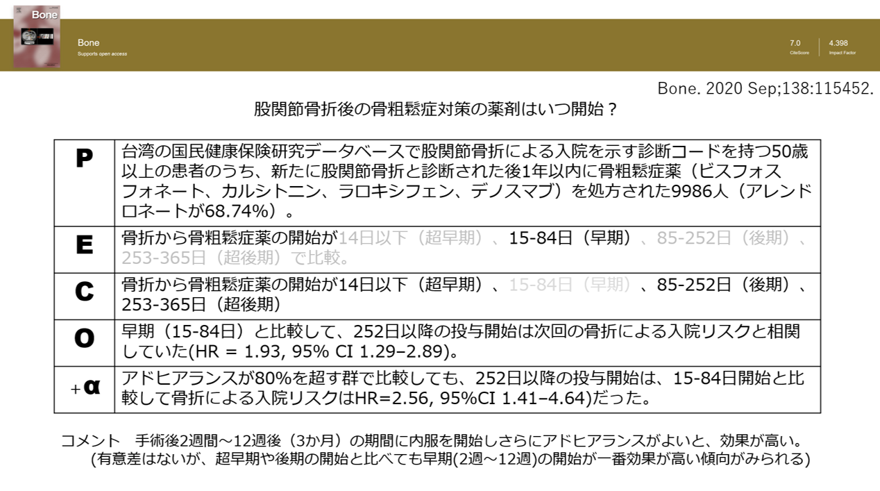 股関節骨折後の骨粗鬆症治療はいつ始める?